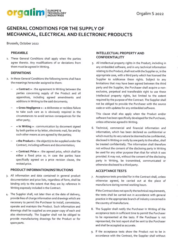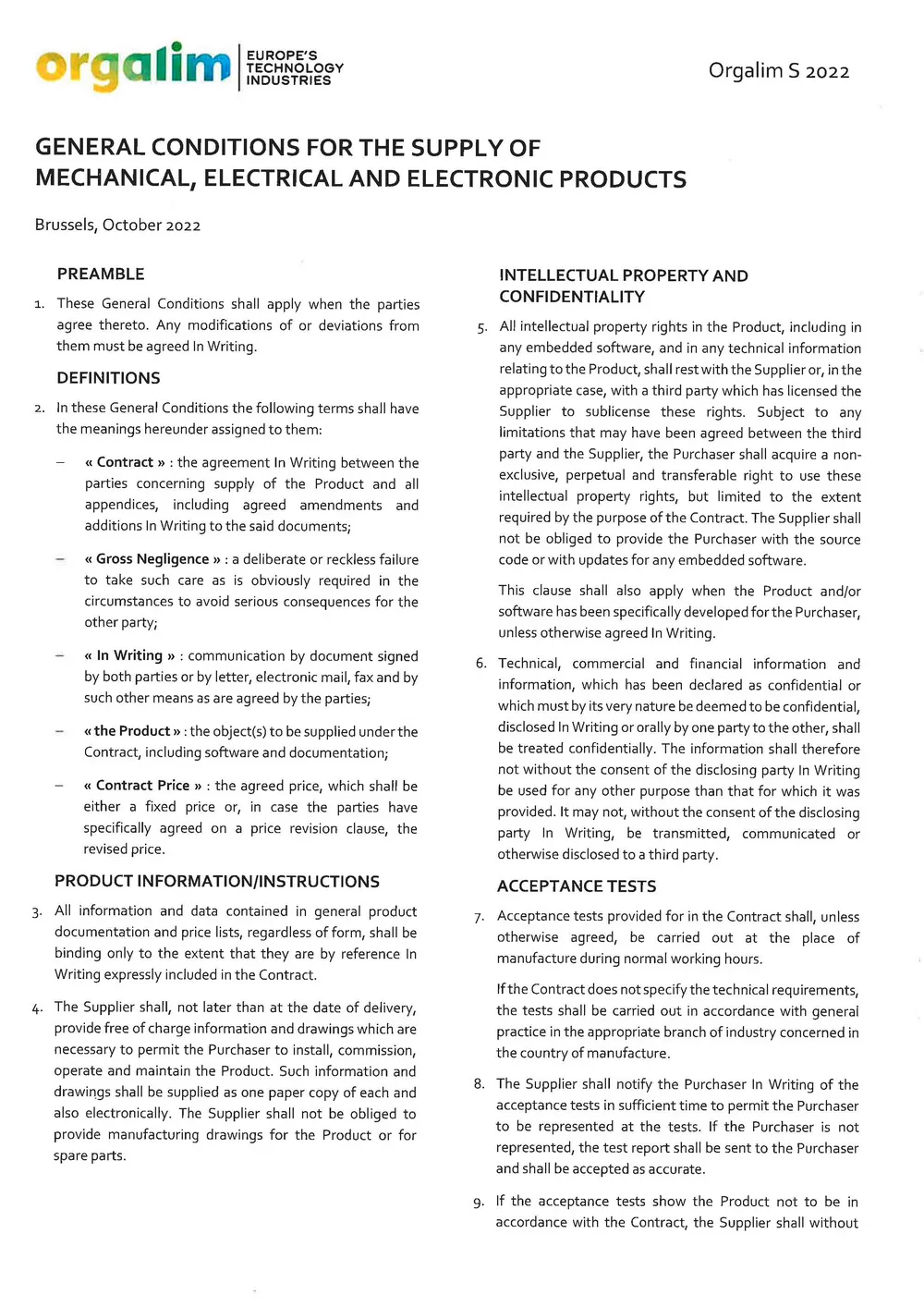 Gerneral Conditions for the supply of mechanical, electrical and electronic products S 2022